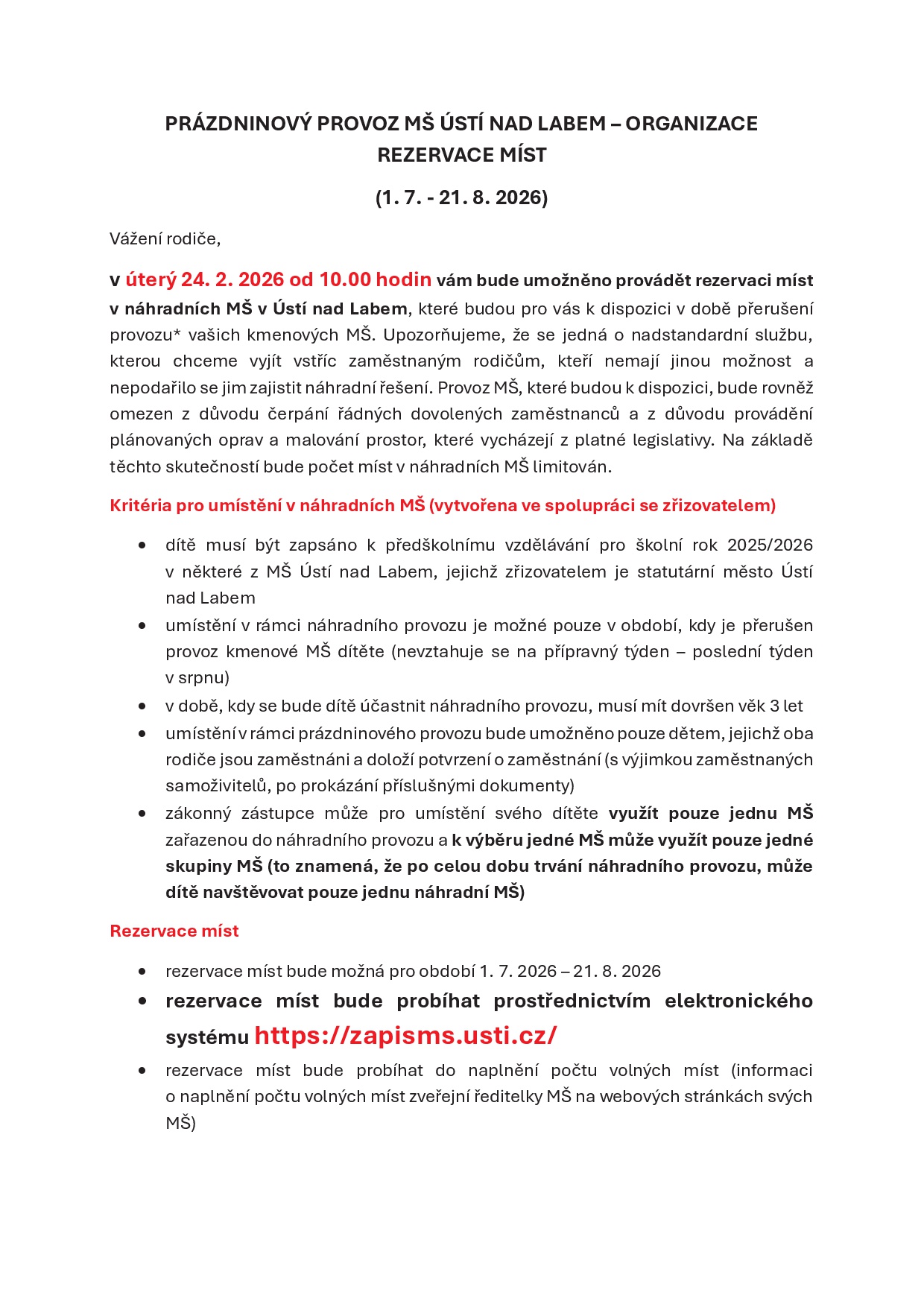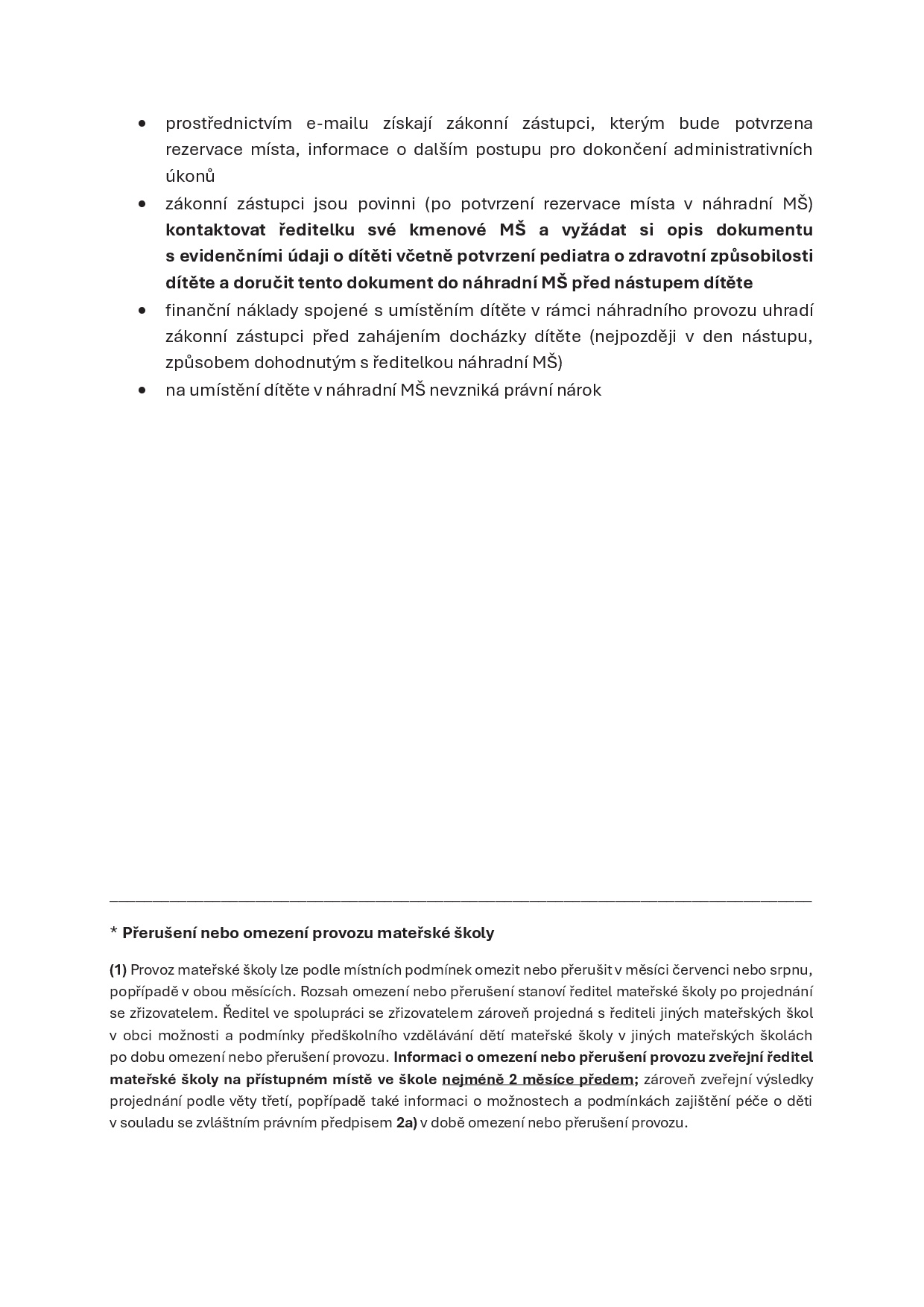 Přerušení provozu mateřské školy v době letních prázdnin